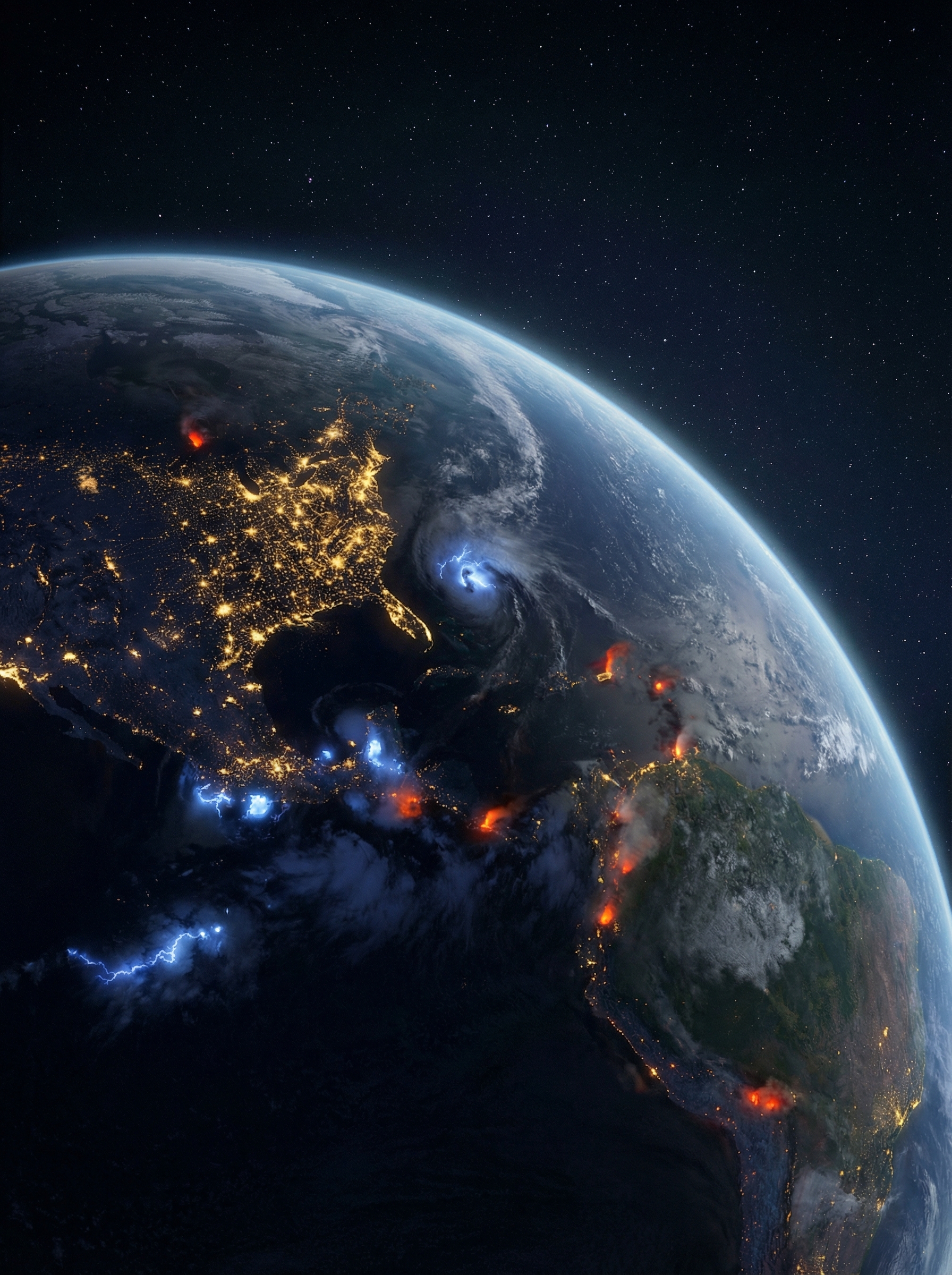 Earth From Space · Lightning · Volcanoes · City Lights · All Simultaneously · Right Now